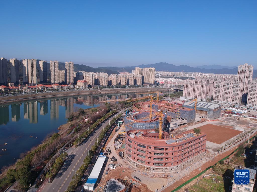 1月30日拍攝的福建省南平市第三實驗學校建設項目施工現場(無人機照片)。