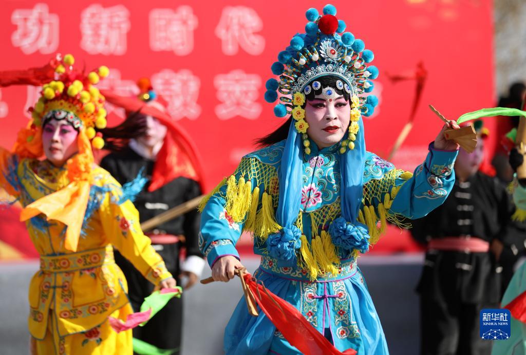 1月29日,在河北省滄縣舊州鎮賈村,民俗藝人在表演落子。