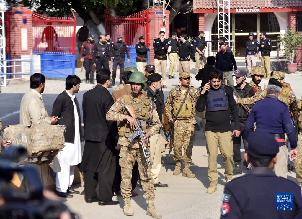 1月30日,在巴基斯坦西北部開伯爾-普什圖省首府白沙瓦市,安全人員在爆炸襲擊事件現場警戒。