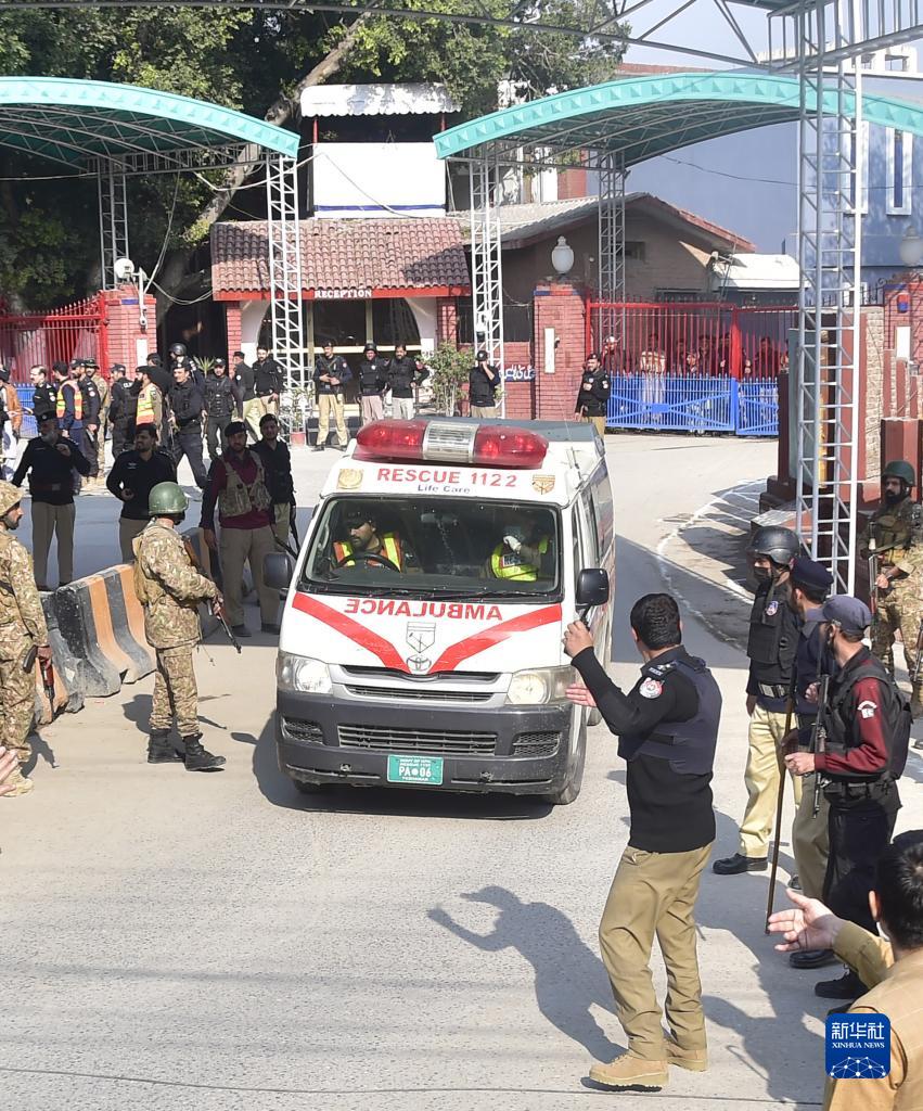 1月30日,在巴基斯坦西北部開伯爾-普什圖省首府白沙瓦市,運送傷者的救護車駛離爆炸襲擊事件現場。