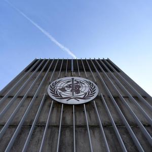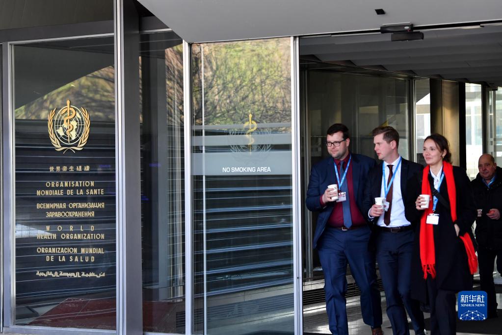 1月30日,在瑞士日內瓦,工作人員走出世界衛生組織總部大樓。