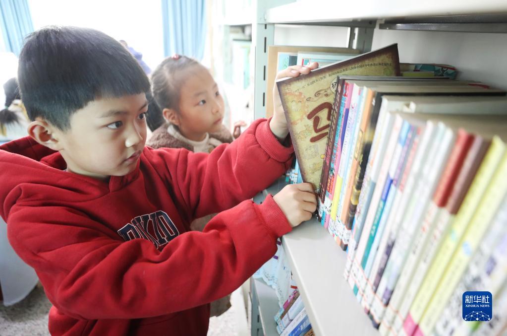1月30日,在衡陽市衡山縣永和鄉松坳村,孩子們在村農家書屋看書。