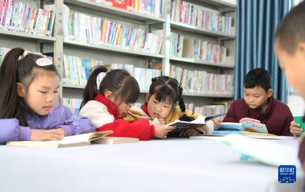 1月30日,在衡陽市衡山縣永和鄉松坳村,孩子們在村農家書屋看書。
