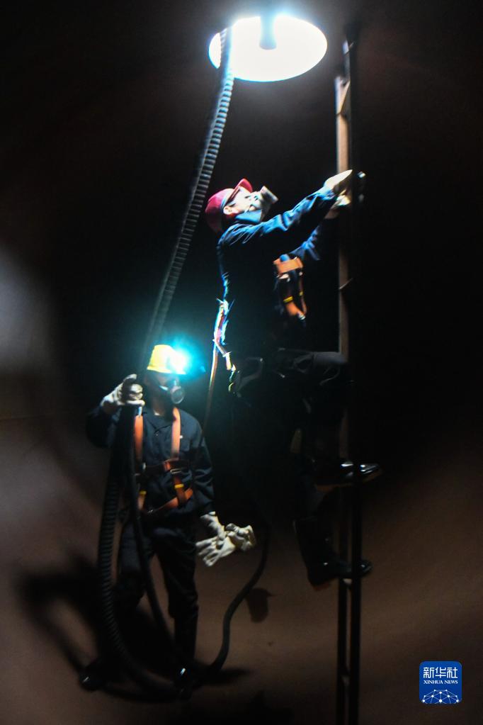 1月31日,在中國鐵路南寧局集團有限公司南寧南車輛段,洗罐工進入油罐車內作業。