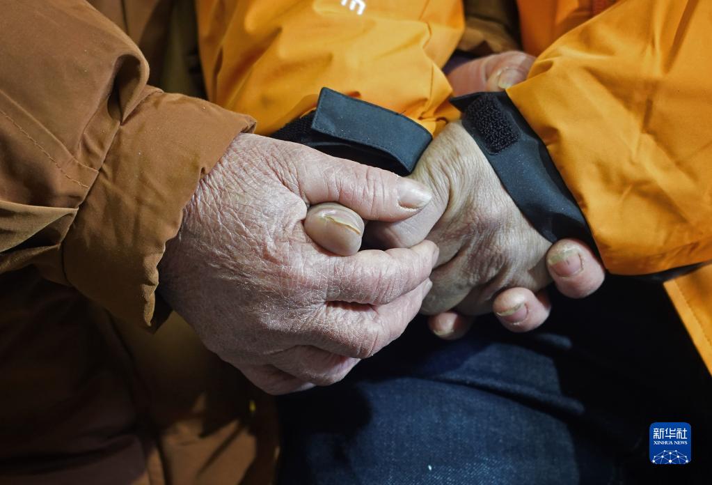 在靖安縣黃龍村,從見到錢芳勇那一刻起,母親余陳妹一直拉著兒子的手(1月30日攝)。
