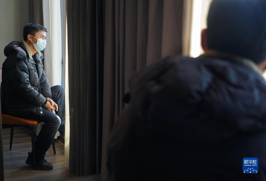 在靖安縣一家酒店,錢芳勇望向窗外,即將見到親生父母,心情有些復雜(1月30日攝)。