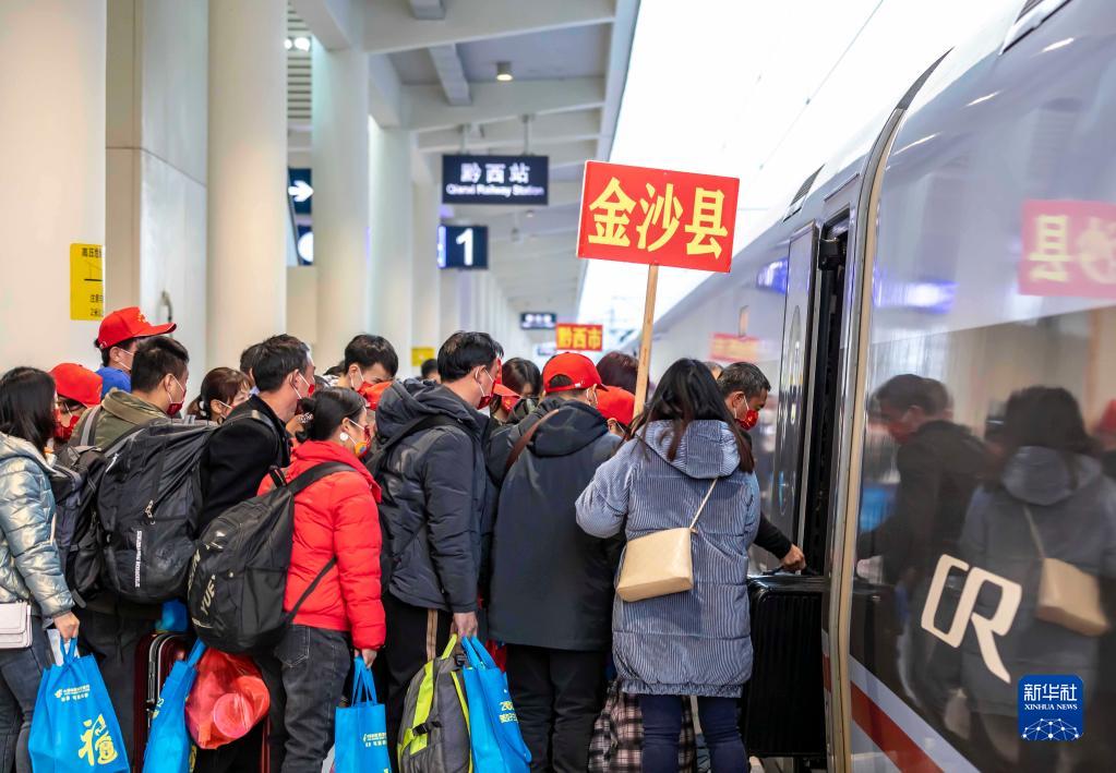 當日,來自貴州省畢節市的600名務工人員分別在畢節站和黔西站,免費搭乘動車前往廣東省廣州市返崗務工,這是今年畢節市通過粵黔東西部勞務協作開行的首趟免費“點對點”返崗專列。