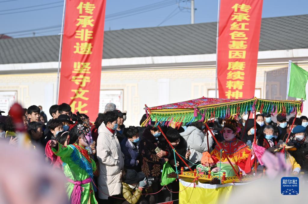 1月31日,西柳行太平車會在天津市北辰區雙口鎮中河頭村展演。
