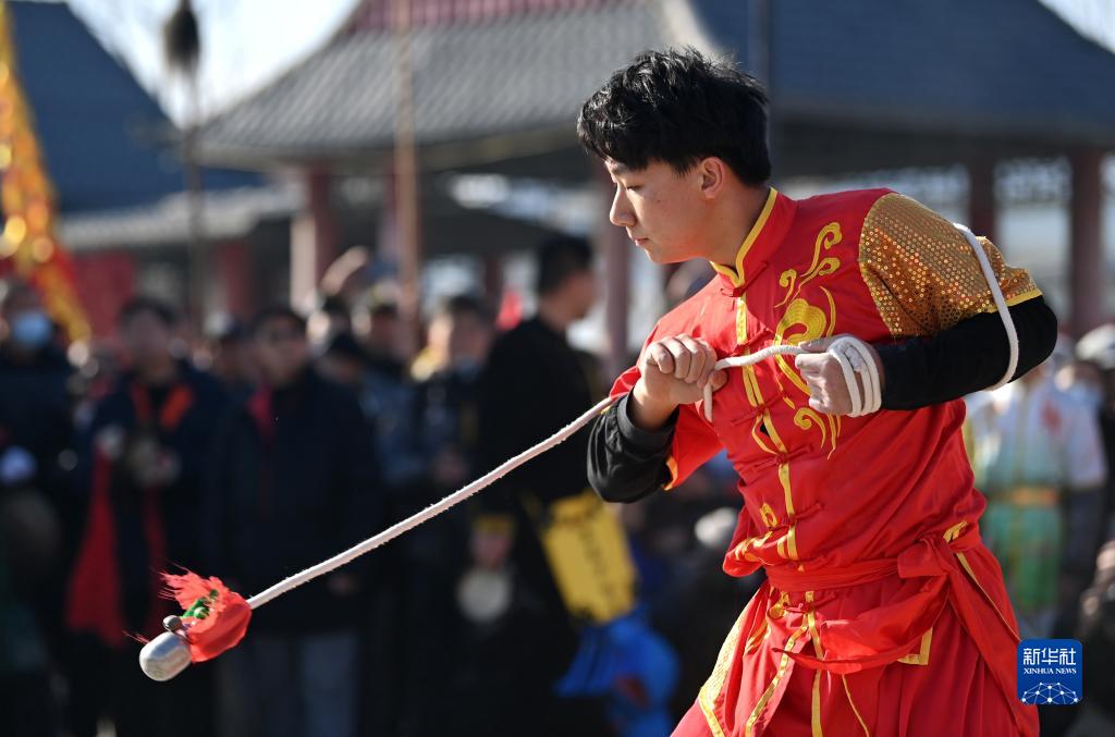 1月31日,漢溝英武少林會在表演武術。
