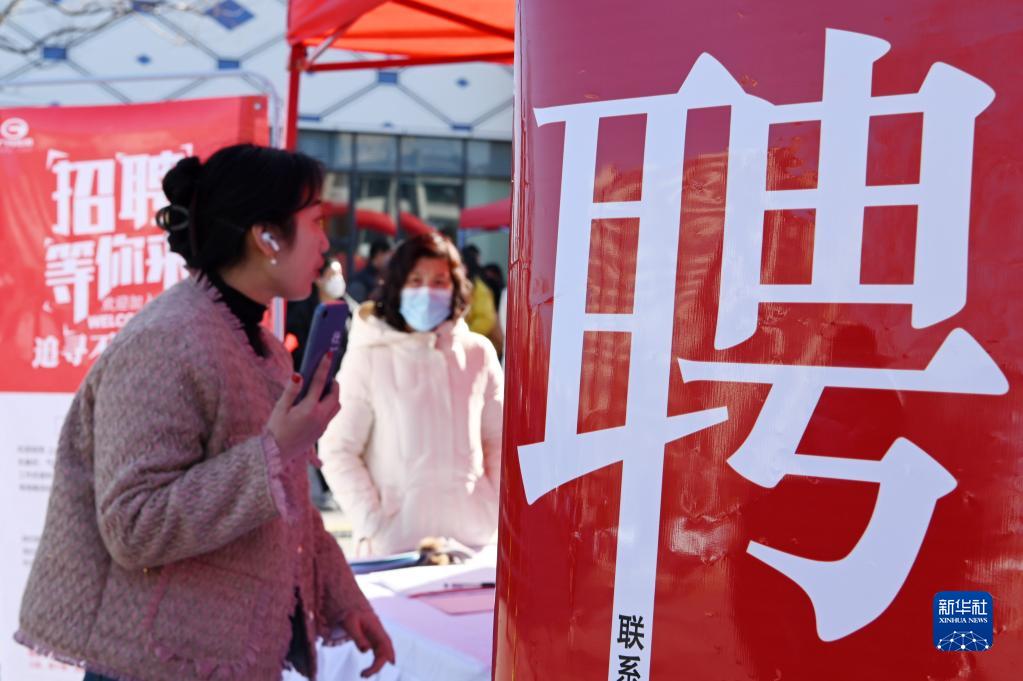 1月30日,在河南省焦作市2023年春風行動暨就業援助月新春招聘會上,求職者在招聘攤位前了解用工信息。