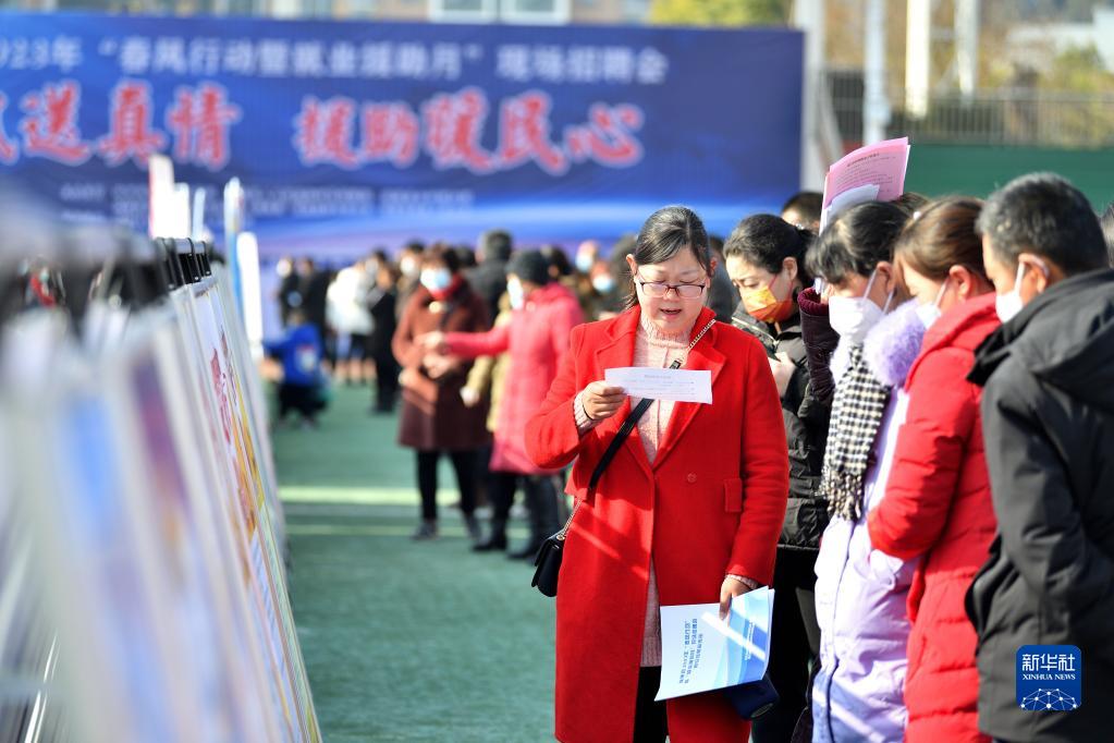1月31日,求職者在湖北省襄陽市??悼h2023年春風行動暨就業援助月現場招聘會上了解崗位信息。
