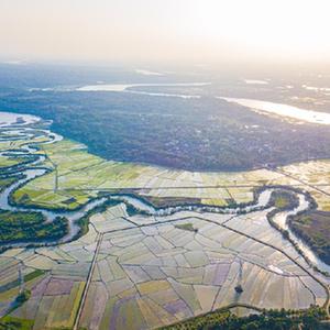 近日,位于??谑协偵絽^的??谌〖墲竦毓珗@及周邊的稻田春意盎然。農民在稻田里忙著種植早稻,蜿蜒的河道與連片的早稻田交織成景,勾畫出一幅幅充滿生機的美麗圖畫。