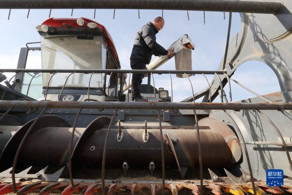 1月31日,浙江省湖州市德清縣新安鎮下舍省級糧食生產功能示范區的技術員在檢修農機。