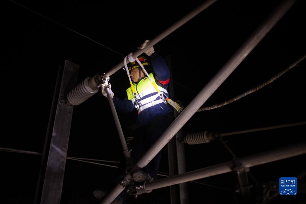 鐵路接觸網供電設備是否正常運轉,關系著每趟列車的安全運行。春運期間,中國鐵路武漢局集團有限公司武漢供電段高鐵接觸網檢修工人利用0點到6點的“天窗點”,頭戴安全帽、身穿反光服,對京廣高鐵武漢段的接觸網進行檢修、維護,為高鐵供電保駕護航。