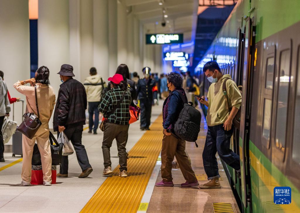 旅客乘坐動車組列車抵達云南勐臘站(1月14日攝)。