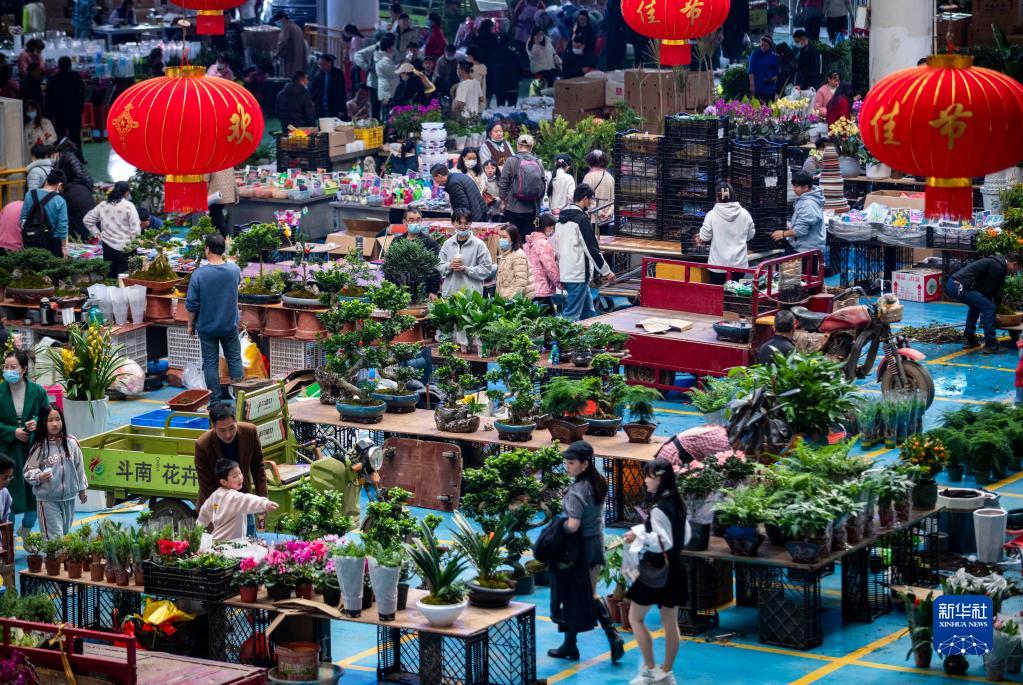 1月31日,游客在昆明斗南花市參觀游覽、選購植物。