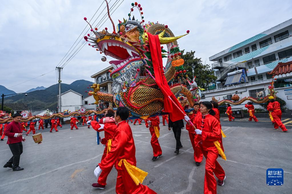 2月1日,窈口村女子板龍隊在湖源鄉進行板龍舞龍表演。