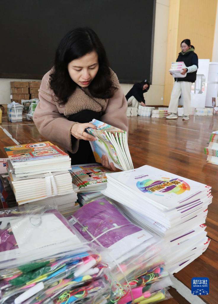 2月1日,江蘇蘇州東中市實驗小學校的老師在整理新書。
