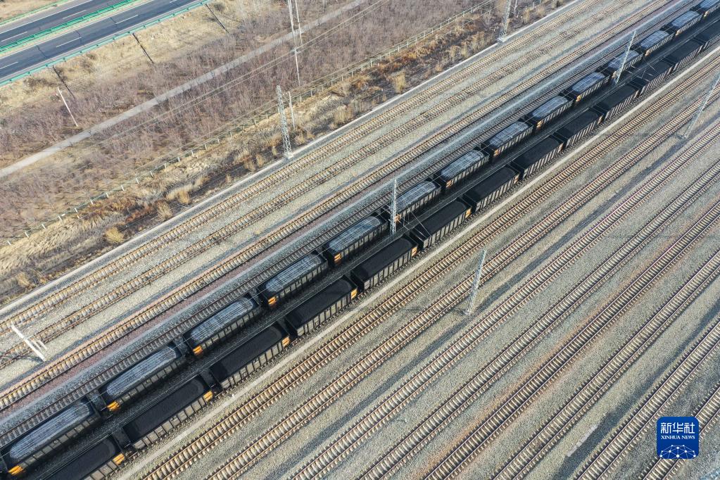這是2月1日在呼和浩特南站拍攝的運煤列車(無人機照片)。