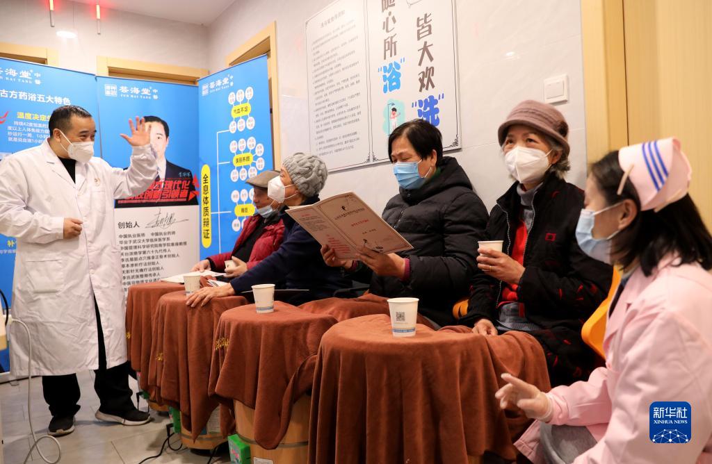 2月2日,社區居民在足部保健時聽中醫師講解經絡保健知識。