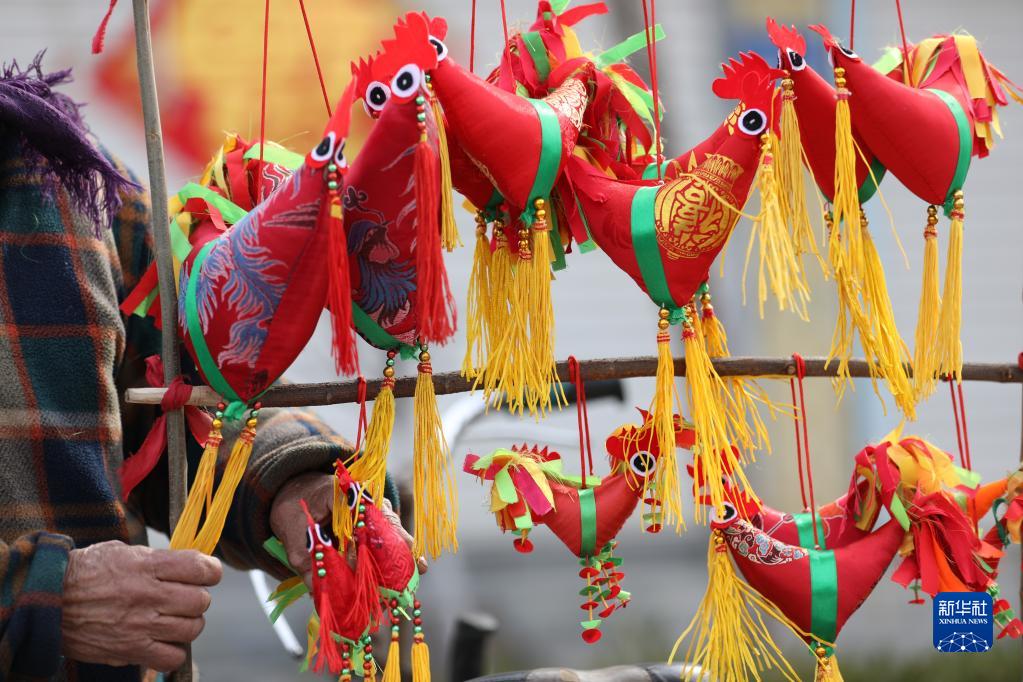 立春將至,山東省臨沂市郯城縣的民間手工藝人忙著用彩色棉布和棉線等縫制“春雞”。魯南部分地區有在立春給孩子佩戴“春雞”的習俗,以此希望孩子在新的一年里茁壯成長、吉祥平安。