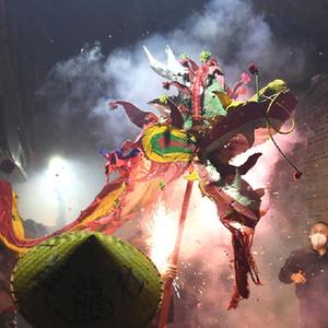 人們在廣西南寧市賓陽縣縣城舞炮龍(2月1日攝)。