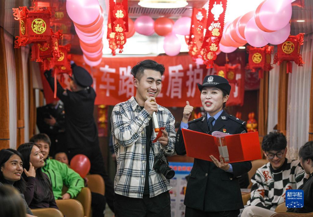 元宵節來臨之際,烏魯木齊鐵路公安局烏魯木齊公安處乘警支隊民警登上網紅列車“中國雪都·阿勒泰號”冰雪旅游專列舉辦活動,與天南海北的旅客一起迎接元宵節,同時向旅客宣傳乘車安全知識,讓安全伴隨旅途。