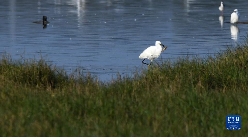 一只白鷺在海南東寨港國家級自然保護區覓食(1月30日攝)。