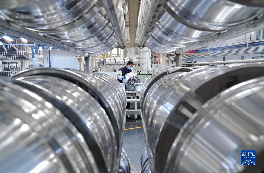 2月2日,工人在秦皇島經濟技術開發區一家車輪企業的生產車間工作。