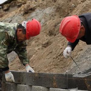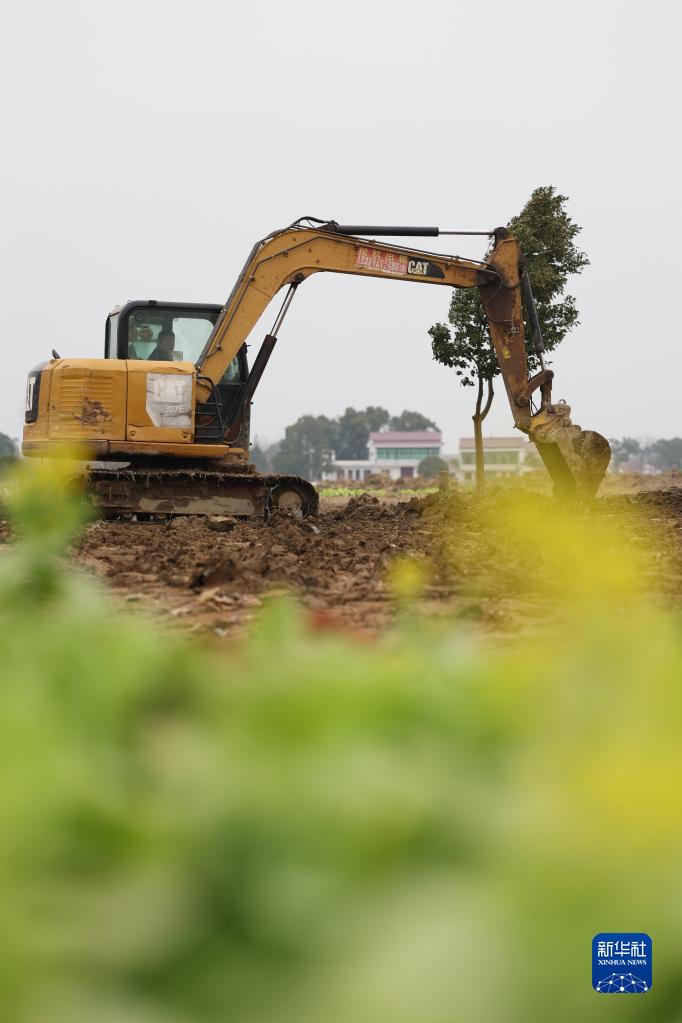 2月2日,工人在湖南省益陽市赫山區筆架山鄉中塘村高標準農田建設現場平整土地。
