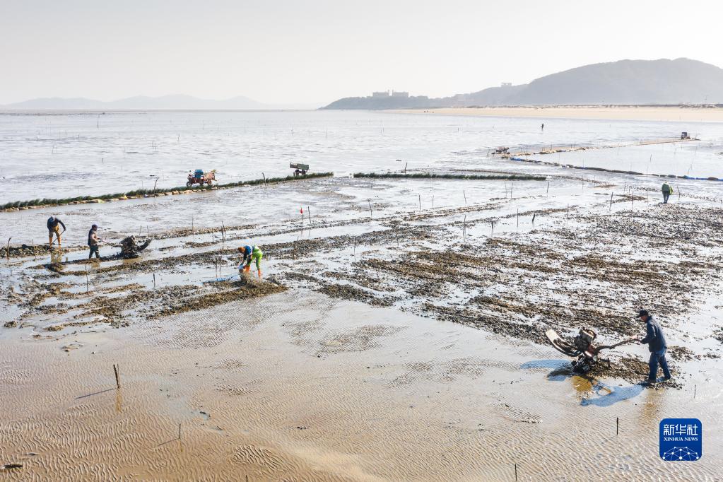 初春時節,福建省福州市馬尾區瑯岐島沿海迎來繁忙的種蟶時節,漁民們翻耕灘涂播種蟶苗,等待5月份開始的縊蟶收獲季節?,樶獚u位于福建閩江入???,沿岸灘涂廣闊,餌料豐富,有得天獨厚的養殖優勢。