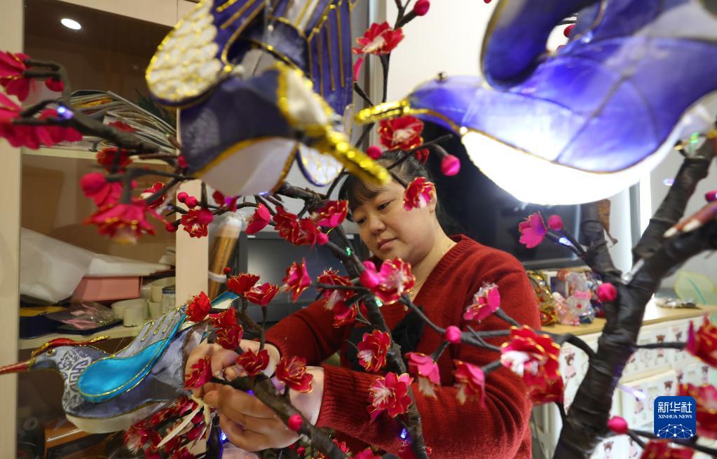 元宵佳節前夕,“上海燈彩”制作技藝黃浦區代表性傳承人龔智瑜和工作室的同事忙于元宵燈彩的展示布置工作。今年元宵節,工作室幾十盞燈彩將為申城元宵佳節增光添彩。