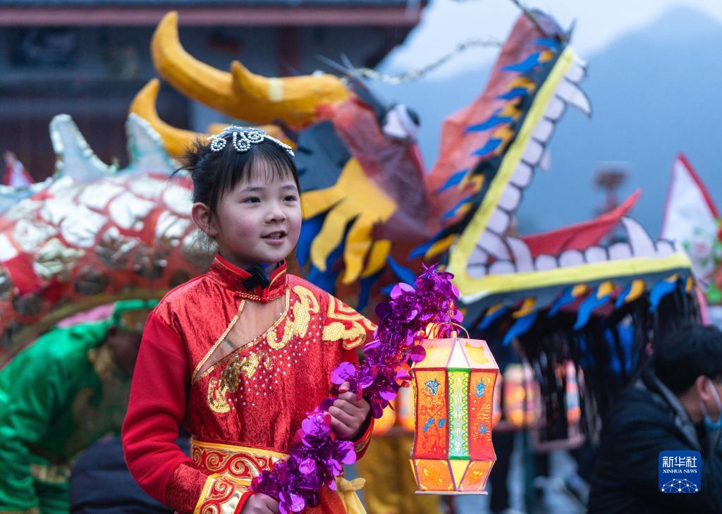 當日,浙江省杭州市淳安縣里商鄉舉行2023元宵節花燈巡游,為當地山鄉增添了熱鬧的元宵氛圍。