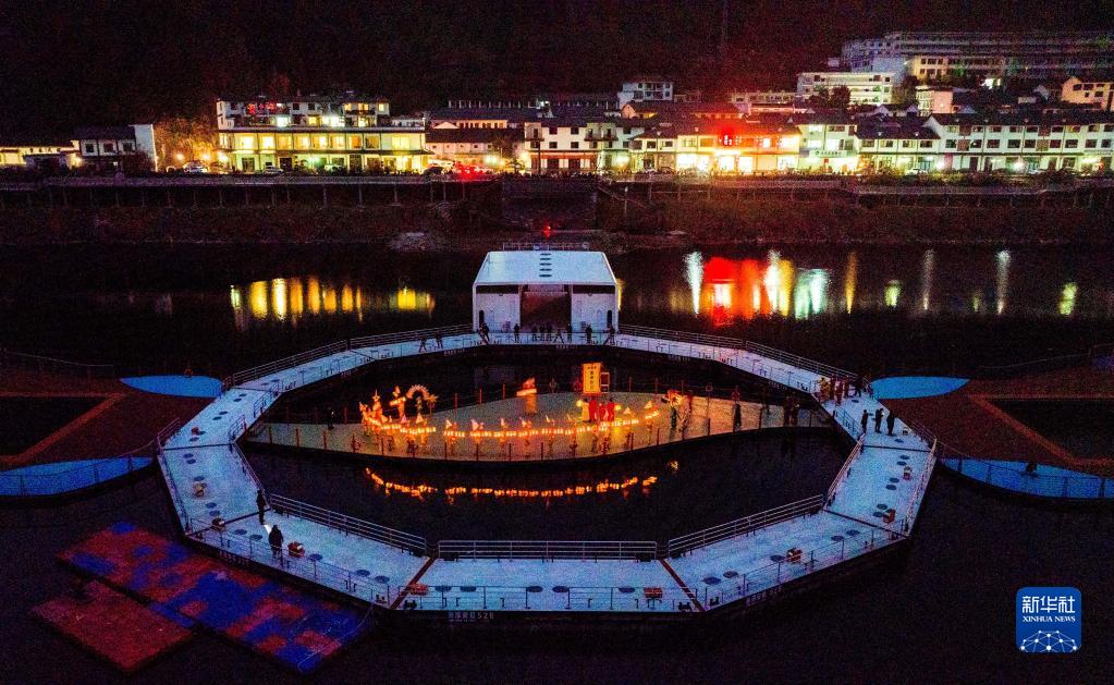 當日,浙江省杭州市淳安縣里商鄉舉行2023元宵節花燈巡游,為當地山鄉增添了熱鬧的元宵氛圍。