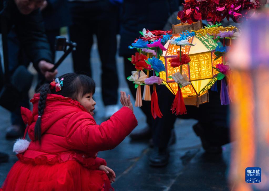 2月2日,在浙江省杭州市淳安縣里商鄉,小朋友在觀看里商仁燈。