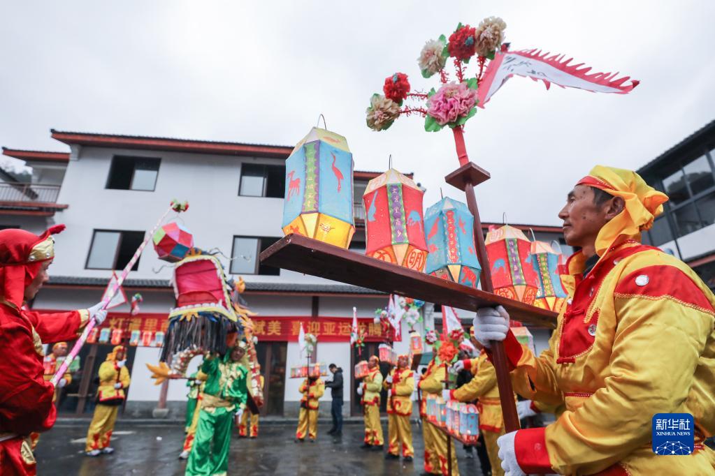 當日,浙江省杭州市淳安縣里商鄉舉行2023元宵節花燈巡游,為當地山鄉增添了熱鬧的元宵氛圍。