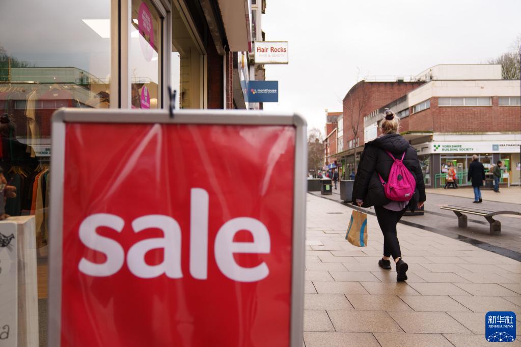 2月2日,在英國曼徹斯特,一名女子經過一家打折店鋪。