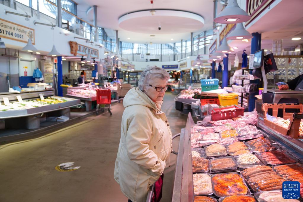2月2日,在英國曼徹斯特,一名女子在市場內購物。