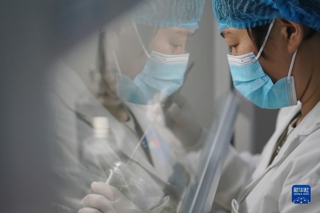 2月2日,技術人員在進行紅薯育苗。