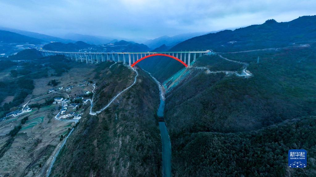 這是2月2日在貴州省遵義市拍攝的大發渠特大橋(無人機照片)。