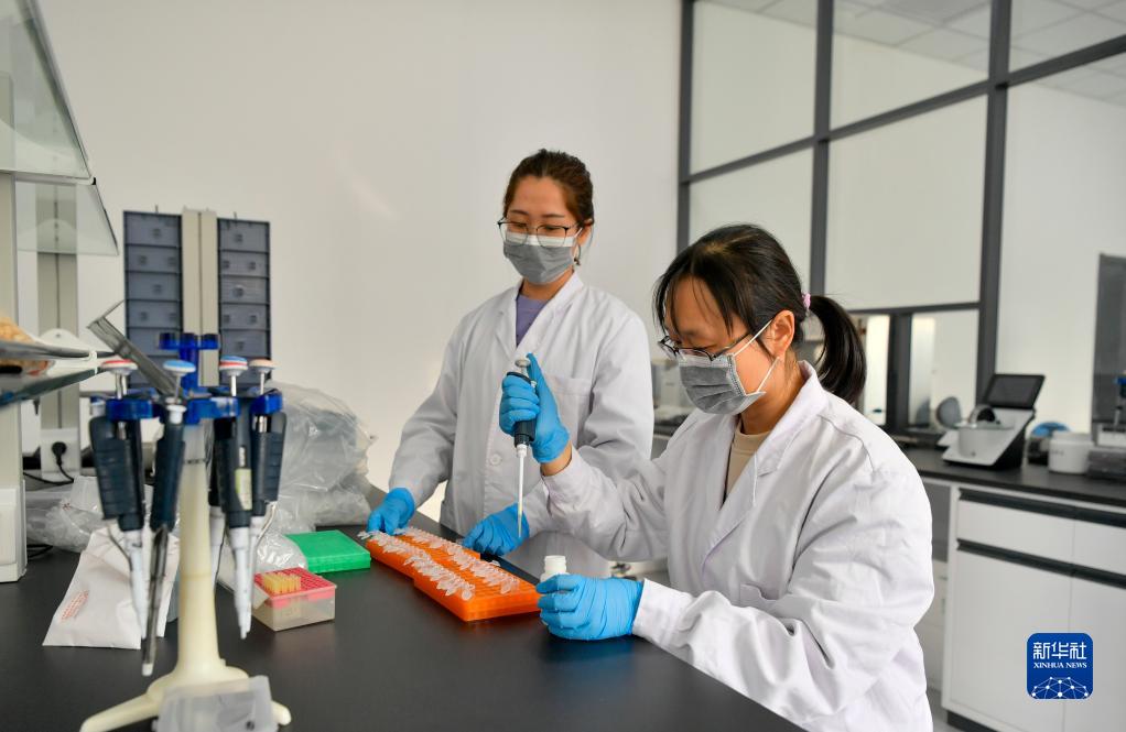2月2日,研究員在天津市農業科學院種質資源與生物技術研究所實驗室內進行小麥種DNA提取工作。