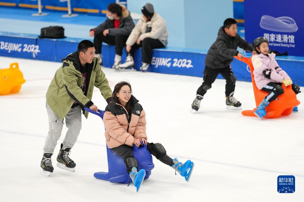 游客在國家速滑館內滑冰(1月30日攝)。