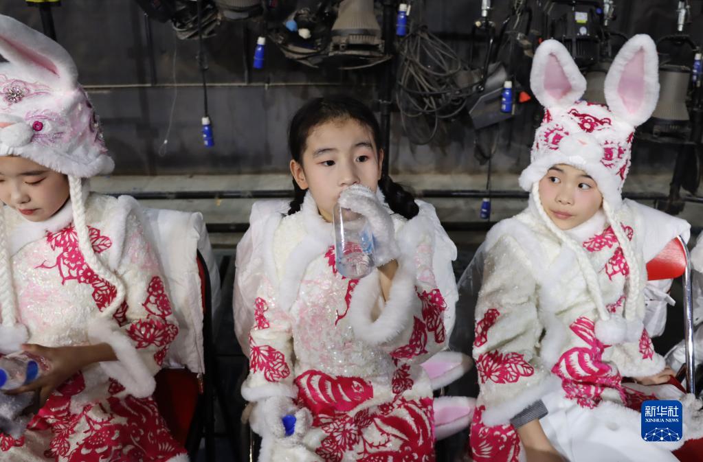馬蘭花兒童聲合唱團團員在春晚彩排的備場室休息(1月18日攝)。