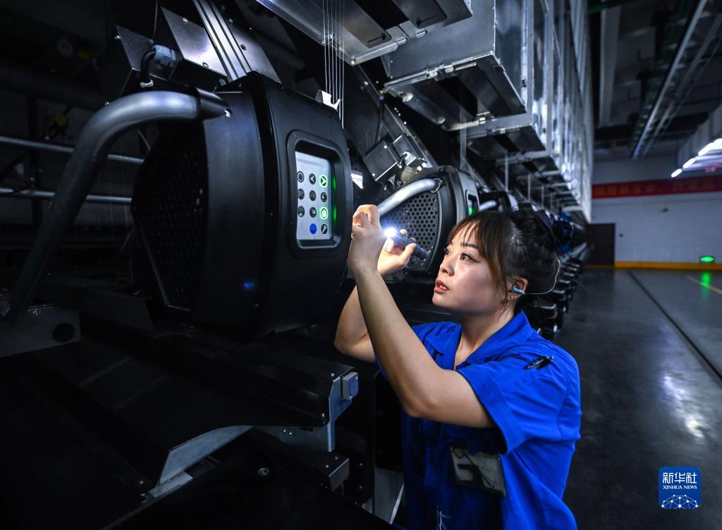 位于桐鄉市洲泉鎮工業園區的桐昆集團浙江恒超化纖有限公司的車間內,工人正在自動化生產線上巡查(2月2日攝)。春節期間,該公司的生產設備全負荷運轉,1000多名職工堅守在生產一線,全力沖刺一季度“開門紅”。