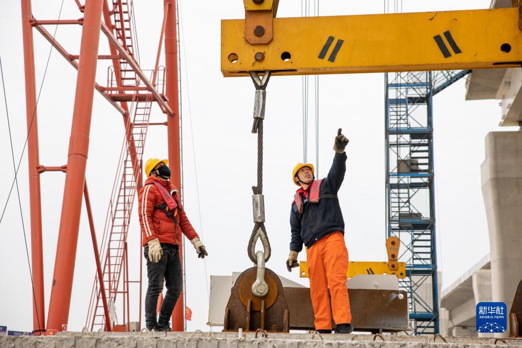 工人們在杭甬高速復線一期工程現場工作(2月1日攝)。