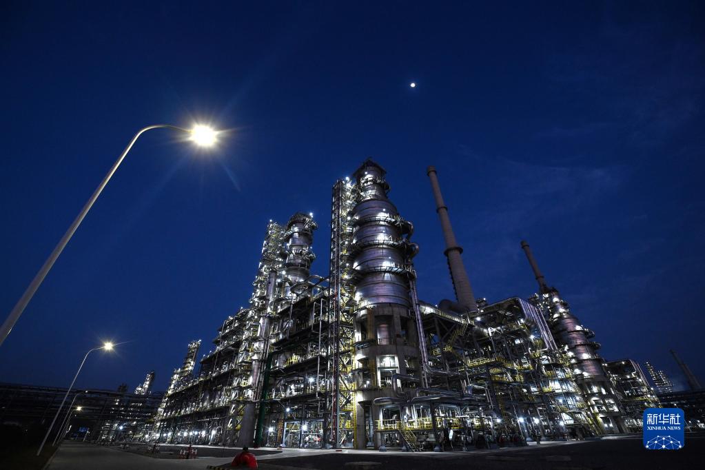 舟山綠色石化基地的煉油裝置正在運行中(1月31日攝)。2022年石化基地完成投資395.9億元,累計加工原油3702.76萬噸,實現產值2314億元。春節期間該基地不停工,一直處于“抓訂單、忙生產”的狀態。