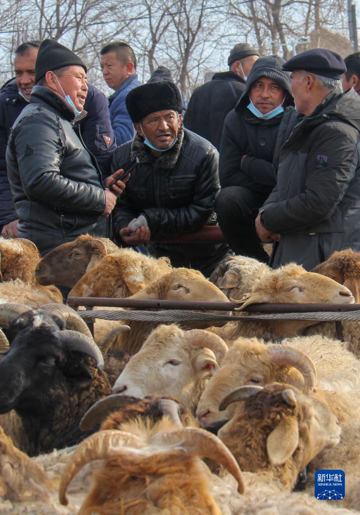 2月1日,位于新疆伊寧縣愉群翁回族鄉阿勒推村的新疆創錦黃公農產品交易市場開市,市場商品琳瑯滿目,牛羊馬交易火爆。