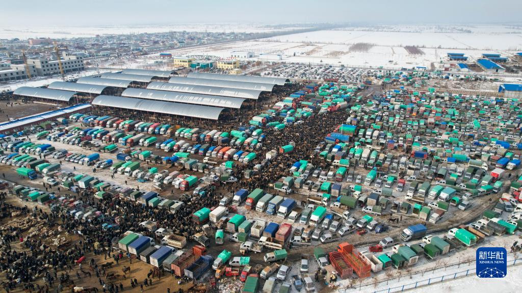 2月1日,位于新疆伊寧縣愉群翁回族鄉阿勒推村的新疆創錦黃公農產品交易市場開市,市場商品琳瑯滿目,牛羊馬交易火爆。