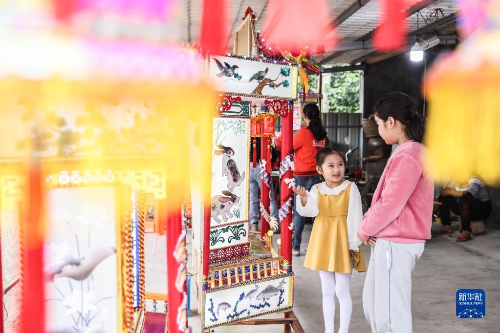 2月2日,海南省瓊海市龍江鎮深造村村民在觀看花燈。