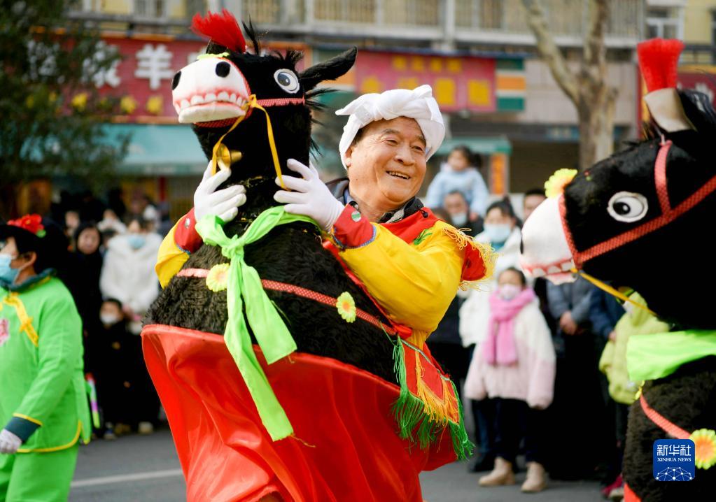 這是2月3日在河南省洛陽市孟津區城關鎮拍攝的社火表演。